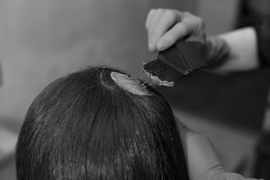カラー施術では、アルカリ成分や変性剤の作用を細かくコントロールすることで、髪への負担を抑制。