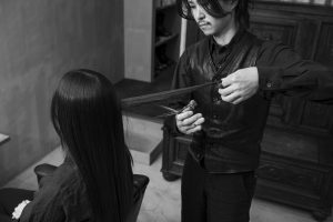 ボリュームのコントロールや骨格へのフィッティングをはじめ、デザイン性、時代性、さらにはお客様の生活環境までを総合的に判断し、最適なカットを行います。Rシェープと呼ばれる「ひねり」を加える技術により、動きとゆとりを持たせながら自然なボリュームを形成。さらにスライドカットやチョップカットを用い、ボリュームを抑えるべき部分は的確に落とし、立体感とメリハリのあるシルエットへと仕上げていきます。